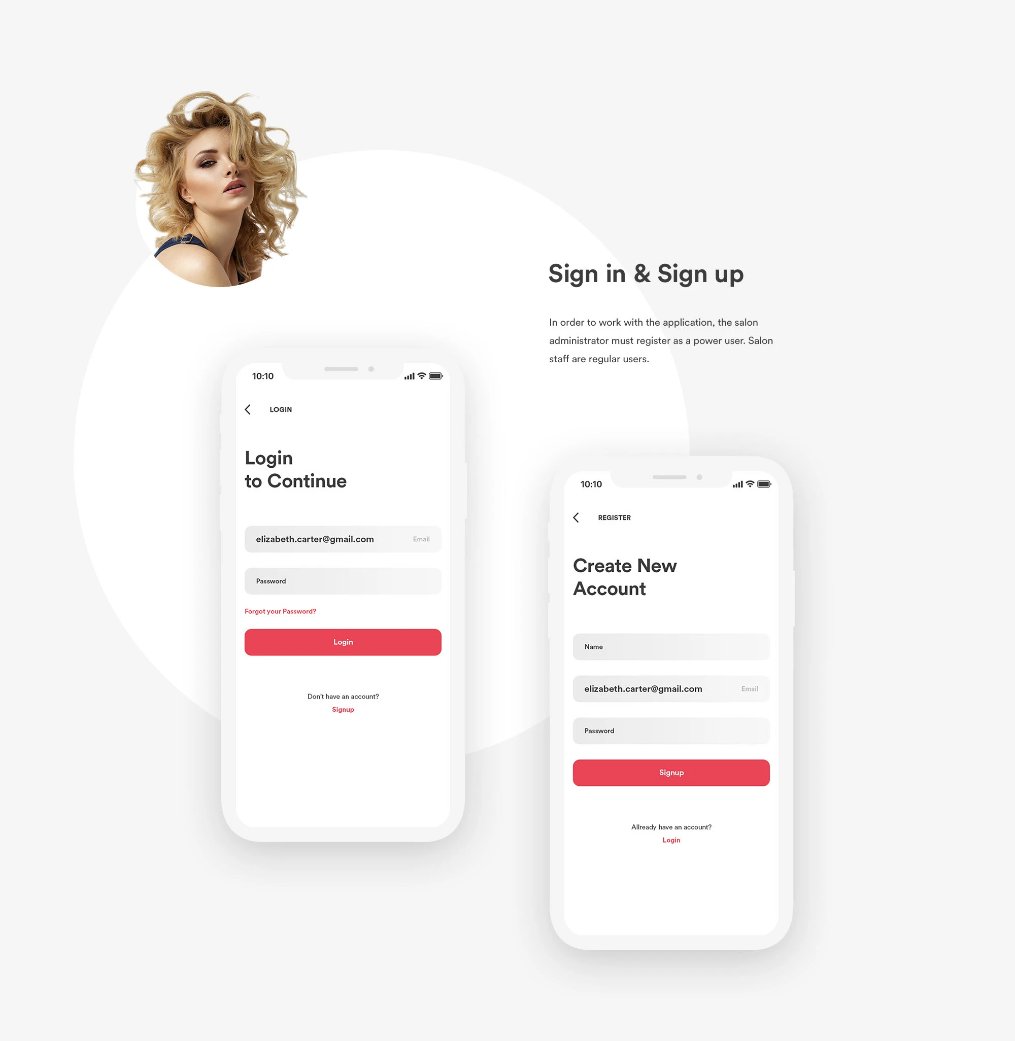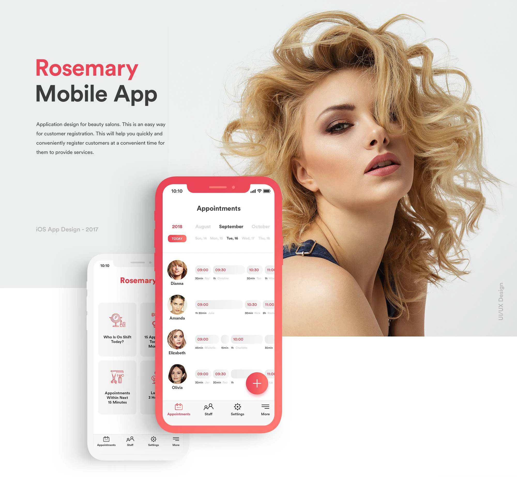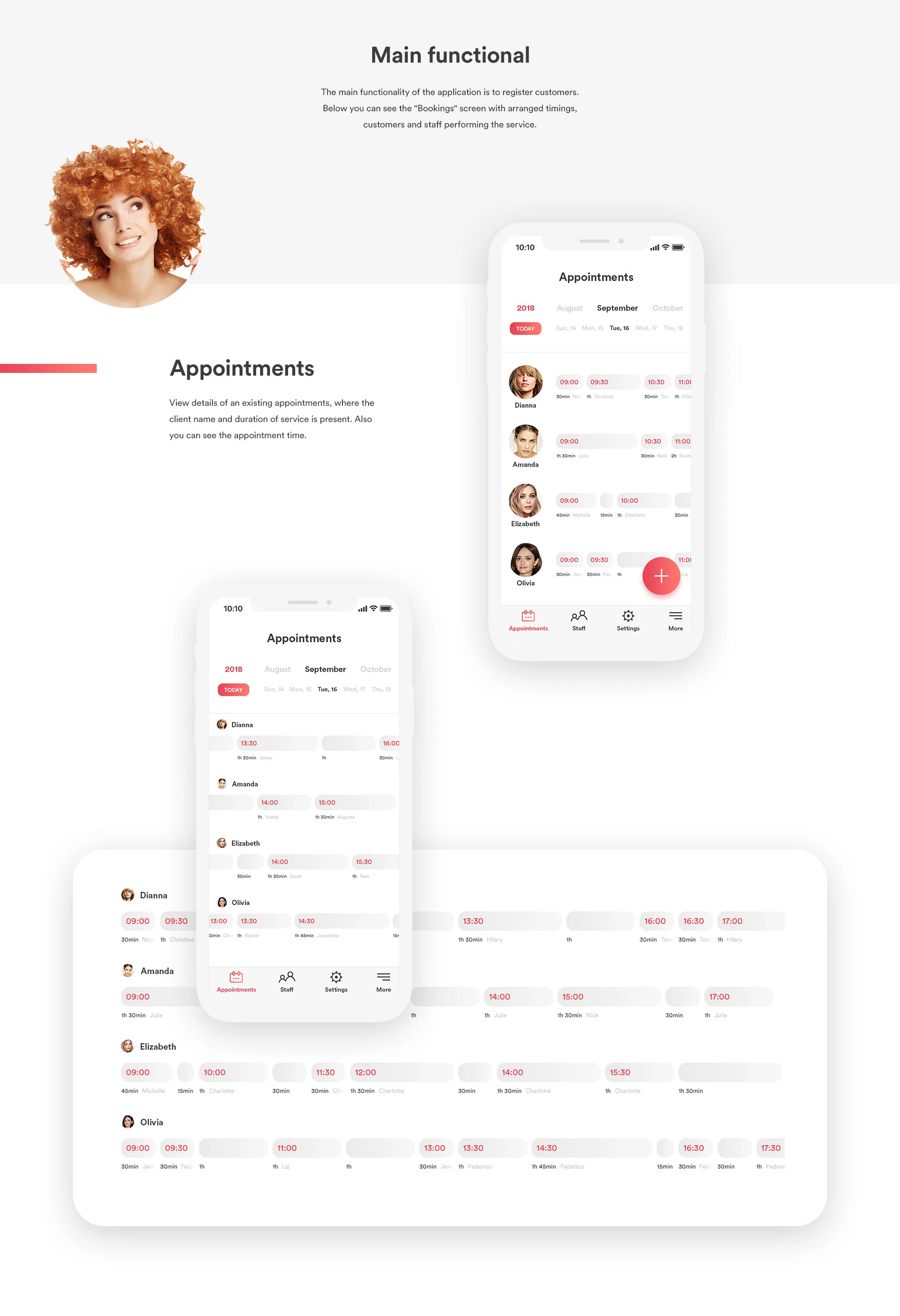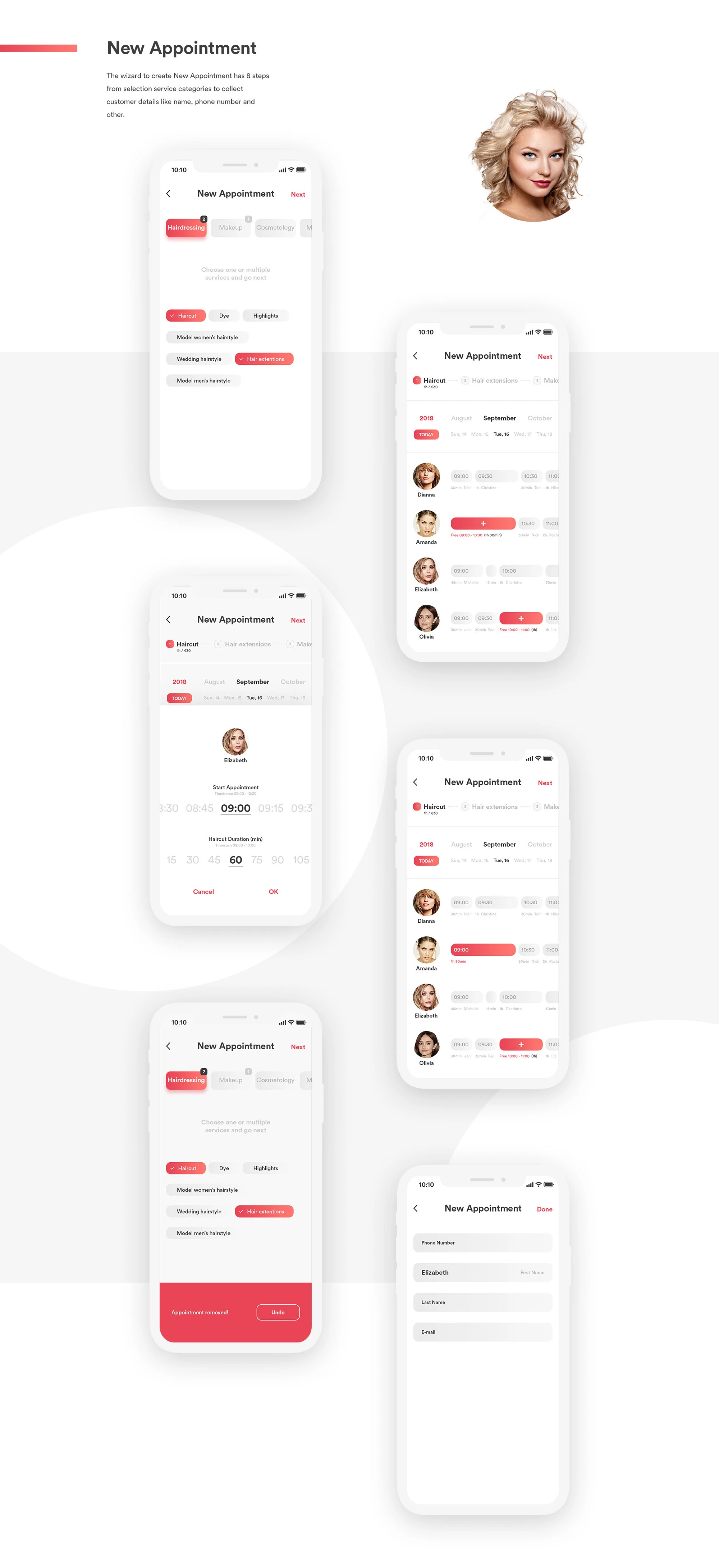 Application design for beauty salons. This is an easy way for customer registration. This will help you quickly and conveniently register customers at a convenient time for them to provide services.